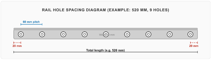 Length (mm) | No. of Holes | End Offset | Hole Pitch |