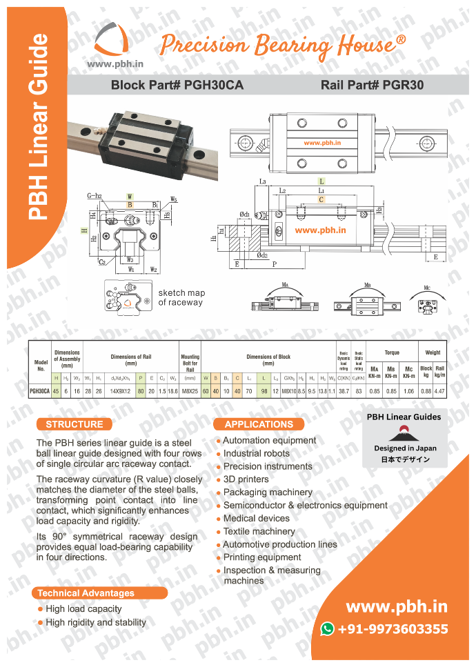 High accuracy *Low Noise *Smooth Movement *High Load Rating *4-Row Even Load Design * Equivalent to HGR30